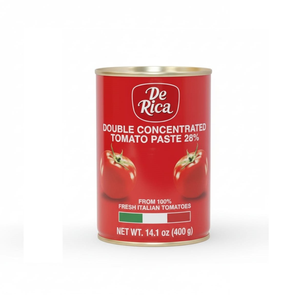 High-quality, triple concentrated tomato paste from De Rica. Made from 100% sun-ripened tomatoes, this paste provides a deep, rich red color and intense tomato flavor, making it perfect for your Jollof rice, stews, and sauces. A must-have for authentic West African cooking.